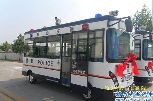 6月21日下午,在河南森源鴻馬電動(dòng)汽車公司長葛生產(chǎn)基地舉行唐山市公安局交通警察大隊(duì)流動(dòng)警務(wù)室發(fā)車儀式。據(jù)了解此次河北唐山市公安局共購置兩臺(tái)鴻馬流動(dòng)警務(wù)室。