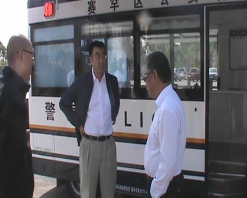 2012年9月6日上午11時,內蒙古自治區(qū)副主席、政法委副書記、公安廳黨委書記、廳長馬明,在內蒙古公安廳副廳長周黎明、巡視員王智、巡視員顏炳強等廳領導陪同下,來到內蒙古黨政辦公區(qū)南門工作現場,參觀呼和浩特市公安局賽罕分局騰飛大道派出所正在執(zhí)勤工作中的鴻馬流動警務室。