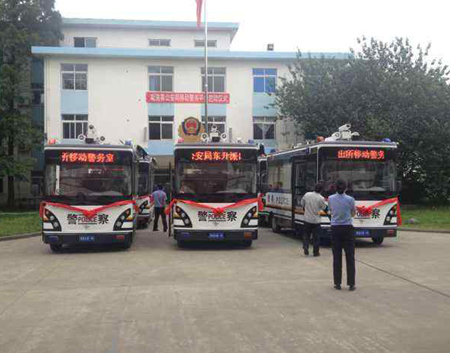 2013年5月29日,雙流縣公安局舉行移動警務(wù)平臺啟動儀式,新購置的5輛多功能移動綜合警務(wù)車將于近日內(nèi)在雙流縣啟動上路。移動綜合警務(wù)車集流動接警、卡口盤查、網(wǎng)上作戰(zhàn)、現(xiàn)場辦公、路面防控、監(jiān)控取證、宣傳咨詢等功能于一體,相當(dāng)于5個小型派出所布控在繁華街區(qū)或要道。作為“家門口的派出所”,移動綜合警務(wù)車必將在暢通民意渠道,解決群眾訴求,創(chuàng)新警務(wù)模式,促進(jìn)警民和諧上發(fā)揮積極作用,成為新形勢下聯(lián)系群眾、服務(wù)群眾、打擊犯罪、開展宣傳的新平臺。