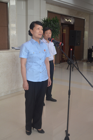 許昌市中級人民法院院長韓玉芬在交車儀式上講話