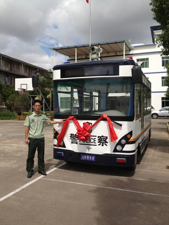 據(jù)漳港邊防派出所民警陳斌介紹,該移動警務(wù)室以電動警務(wù)車為載體,可容納3-4名民警同時辦公,一次充電可行駛30余公里,堪稱一個流動的“派出所”。車前、尾部安裝有LED電子屏,車頂不同角度還安裝了4個監(jiān)控探頭,通過車載3G無線網(wǎng)絡(luò)將現(xiàn)場監(jiān)控畫面實時傳輸至指揮中心。移動警務(wù)辦公室控制臺是整個流動警務(wù)室的“大腦中樞”,車載報警調(diào)度指揮系統(tǒng),支持圖像無線傳輸系統(tǒng),并能通過車載3G無線網(wǎng)絡(luò)和指揮中心“互聯(lián)互通”,實時調(diào)取路面監(jiān)控畫面,實現(xiàn)“移動作戰(zhàn)”。
