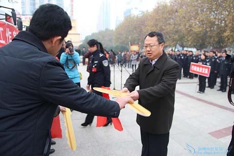 2013.12月3日上午,宿州市“鴻馬城管執(zhí)法站”啟用儀式在宿州市二中科技廣場舉行。宿州市城管局局領(lǐng)導(dǎo)班子領(lǐng)導(dǎo)成員出席儀式。市城管局局機(jī)關(guān)全體人員,網(wǎng)格員大隊(duì),行政執(zhí)法支隊(duì),宿州市廣場管理處,宿州市供水公司等參加儀式。