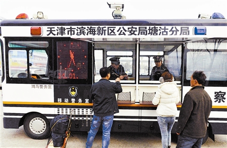 天津?yàn)I海移動(dòng)警務(wù)車(chē)亮相 零距離服務(wù)市民群眾