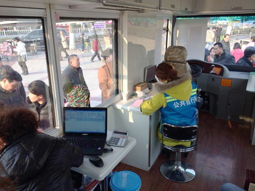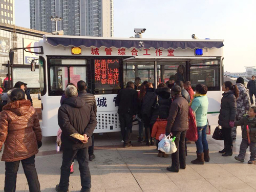 2月12日上午,宿州市城管執(zhí)法人員依托他們的新裝備——可移動城管執(zhí)法車在宿州二中廣場執(zhí)勤,為宿州市民辦理免費自行車卡,此舉受到了宿州市民的一致好評。