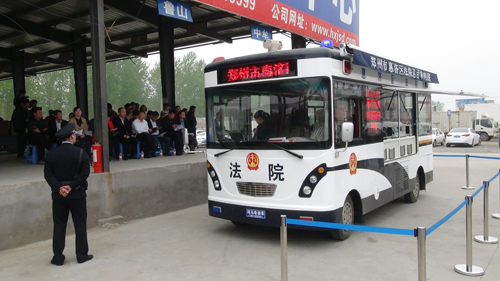 據(jù)了解,昨日這起案件的審理,是鄭州市法院系統(tǒng)首輛巡回審判車的首次開庭使用。
