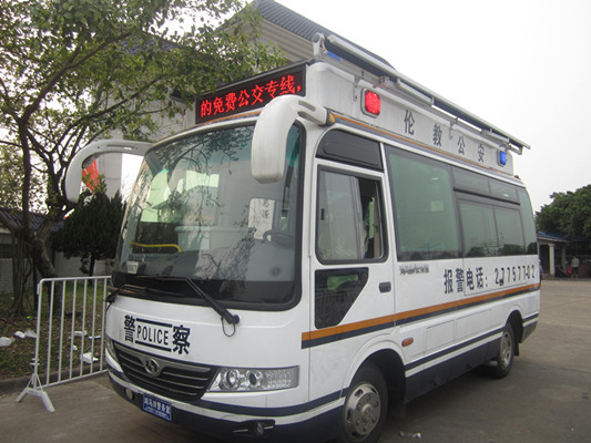 移動(dòng)警務(wù)車從外觀上看,如同一輛中巴大小,但車身醒目地標(biāo)著報(bào)警電話:27757702。當(dāng)然,最引人注目的是它那不停閃爍的警示燈,主要起到震懾警示作用。車上還安裝有LED燈,LED燈及時(shí)地播放思源堂的現(xiàn)場(chǎng)狀況。不僅如此,為了加強(qiáng)移動(dòng)警務(wù)車的便民作用,車子專門安裝了簡易的辦公桌,民警在車內(nèi)就能辦公。
