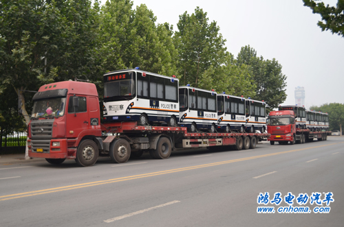 6月12日上午,在鴻馬公司舉行深圳龍崗25臺(tái)鴻馬4米移動(dòng)警務(wù)室發(fā)車儀式。