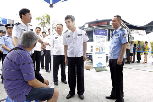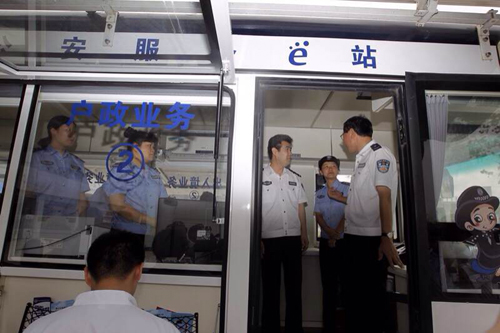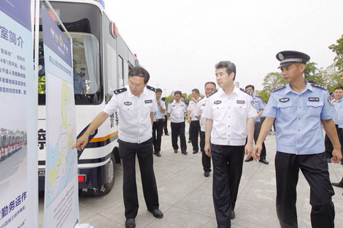 6月14日,深圳市南山公安局領(lǐng)導(dǎo)一行來到最新亮相轄區(qū)的新型移動警務(wù)車上,接待過往群眾咨詢、求助等事宜。