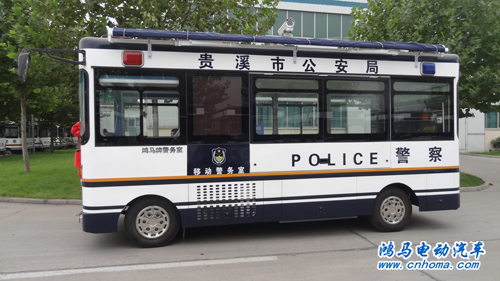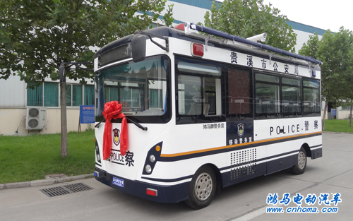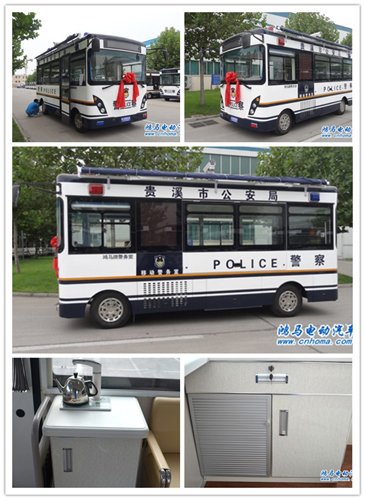 據(jù)悉,為積極推進(jìn)社會(huì)管理創(chuàng)新、實(shí)現(xiàn)警務(wù)工作信息化、探索和諧警民關(guān)系建設(shè)的新途徑,江西省貴溪市公安局特訂購(gòu)了一臺(tái)具有巡邏防控、打擊管理、服務(wù)宣傳等綜合執(zhí)法功能的鴻馬流動(dòng)警務(wù)室。
