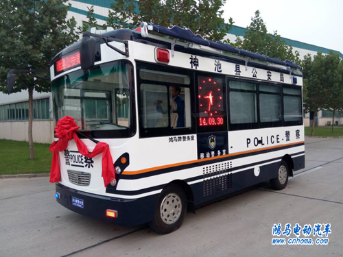 9月30日下午,在鴻馬公司舉行山西忻州神池縣鴻馬移動警務(wù)室發(fā)車儀式。