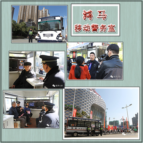 福清市公安局政委陳明俤介紹說:“引進鴻馬移動警務(wù)室是局黨委推進”民生警務(wù)“的重要舉措,也是局黨委貫徹公安部屯警街面,動中備勤,快速反應(yīng)、處置街面突發(fā)性事件的一個措施。這種動靜巡邏模式的結(jié)合,有利于做到巡邏防控的全天候、全方位。