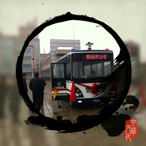1月23日,在山東招遠(yuǎn)市公安局舉行鴻馬移動警務(wù)室交車儀式。