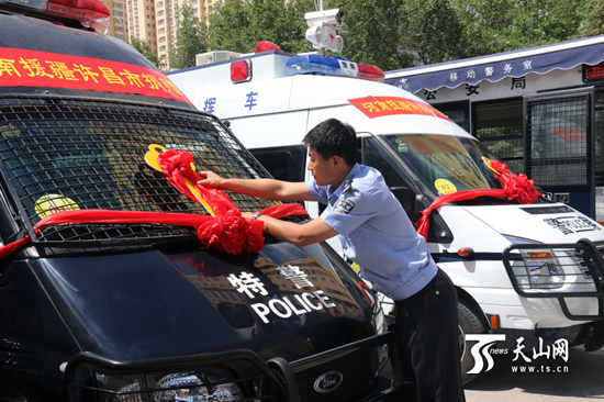 6月10日,河南省許昌市向新疆公安機關(guān)贈送警務(wù)用車儀式在自治區(qū)公安廳舉行,此次捐贈的警務(wù)用車包括2輛警務(wù)指揮車、3輛移動警務(wù)室、2輛警務(wù)巡邏車。
