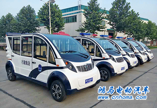 河南鄭州市5臺鴻馬電動巡邏車發(fā)車 王牌品質(zhì) 值得信賴