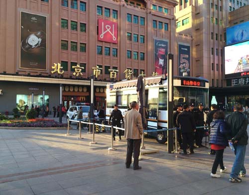 鴻馬移動警務室在北京百貨大樓繁華地段執(zhí)勤