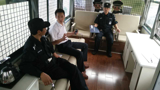連云港市東?h公安局副局長趙紅參觀鴻馬防暴巡邏車