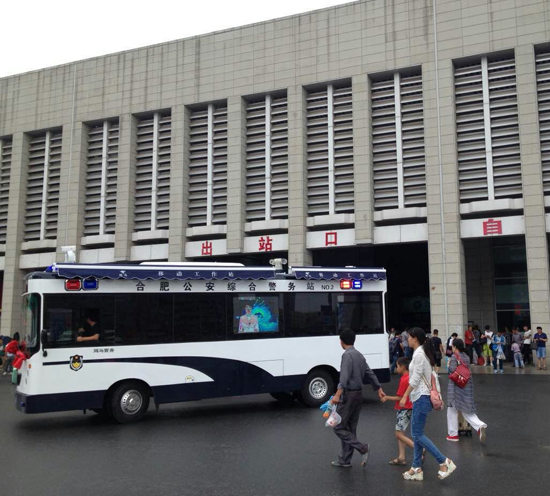 9月25日,合肥火車站站前廣場(chǎng),市公安局第一輛移動(dòng)警務(wù)站正式投入使用。國慶和中秋兩節(jié)臨近,該警務(wù)站將在火車站廣場(chǎng)實(shí)現(xiàn)24小時(shí)不間斷運(yùn)行,集多警種合成執(zhí)法、移動(dòng)監(jiān)控、便民服務(wù)為一體,為市民出行安全提供有力保障。