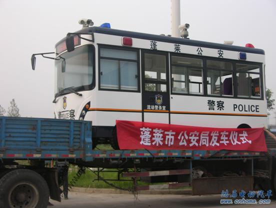 8月13日,在森源鴻馬電動(dòng)汽車研發(fā)中心的廣場(chǎng)內(nèi),一臺(tái)5.5米長(zhǎng)的流動(dòng)警務(wù)室停放在那里,它即將到山東省蓬萊市為社會(huì)治安的管理做出貢獻(xiàn)。