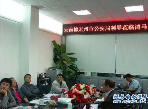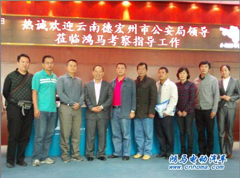 10月18日,云南德宏州公安局領(lǐng)導(dǎo)蒞臨鴻馬考察指導(dǎo)工作,馬總陪同德宏公安局長,德宏財(cái)政局代表、德宏裝配處代表一行10余人參觀了鴻馬電動汽車流動警務(wù)室和展覽中心。高度贊揚(yáng)了公司產(chǎn)品的質(zhì)量和熱情的服務(wù)。