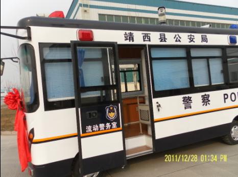 12月28日,廣西百色市靖西縣公安局流動(dòng)警務(wù)室發(fā)車儀式在鴻馬電動(dòng)汽車生產(chǎn)基地長(zhǎng)葛舉行。百色市靖西流動(dòng)警務(wù)室是專為靖西縣公安局量身打造的,車身長(zhǎng)5.5米,寬度2.1米,車上裝有高科技的警用設(shè)備:GPS、喊話器、3G視頻傳輸系統(tǒng)、智能監(jiān)控系統(tǒng)等,同時(shí)還配備了愛警愛民的設(shè)備:空調(diào)、微波爐、飲水機(jī)等,為我們的警察同志們提供了齊全的辦公設(shè)備和完善的生活設(shè)施。