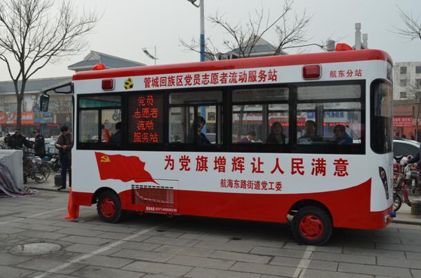 2012年3月16日上午,三臺黨員志愿者服務(wù)站身上顯示有“為黨旗增輝,讓人民滿意”標(biāo)語的鴻馬黨員志愿者服務(wù)站在鄭州文廟廣場舉行啟動(dòng)儀式,管城區(qū)相關(guān)領(lǐng)導(dǎo)參加。