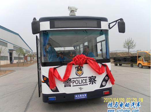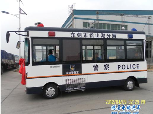 2012年4月9日下午,在河南森源鴻馬電動汽車公司長葛生產(chǎn)基地舉行東莞市松山湖警用便民移動警務(wù)室首發(fā)儀式。