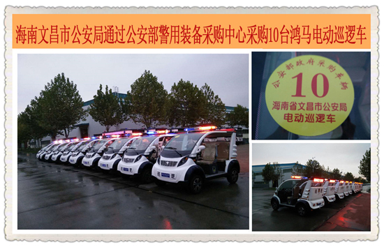 海南文昌市通過公安部警用裝備采購中心采購10臺鴻馬電動巡邏車