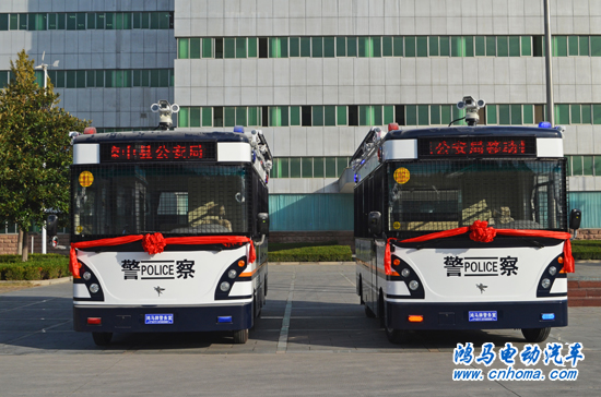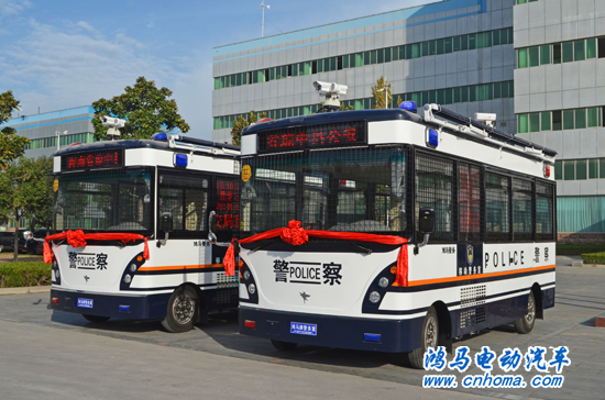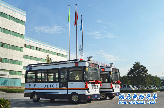 10月28日上午,在鴻馬公司舉行海南省瓊中縣2臺鴻馬高科技移動警務(wù)室發(fā)車儀式。