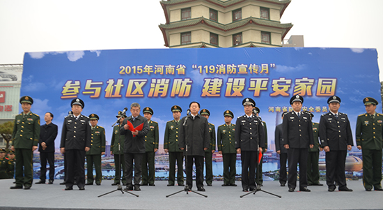 11月8日上午,在鄭州市二七廣場隆重舉行2015年河南省“119消防宣傳月”啟動儀式,河南省委常委、鄭州市市委書記吳天君,河南省副省長、公安廳廳長許甘露及省防火安全成員單位相關(guān)領(lǐng)導(dǎo)出席此次活動,河南省人民政府副秘書長趙宏宇主持此次啟動儀式。