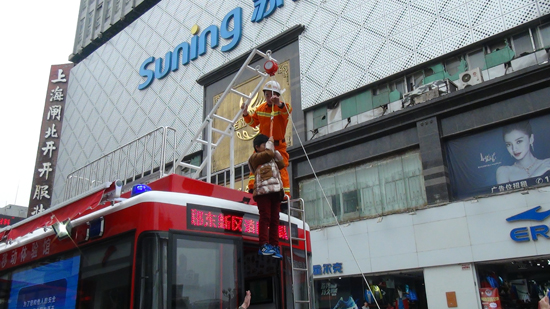 小朋友現(xiàn)場體驗高層建筑逃生演示