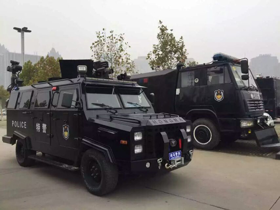 在演練現(xiàn)場四周,記者看到來自省會警方相關(guān)警種的特種裝備和特種車輛及宣傳展板展示,吸引著大批群眾駐足觀看。其中最引人注目的是鴻馬公司研發(fā)投產(chǎn)的防彈裝甲車、防暴運兵車、武裝巡邏車、特警突擊車等警用車產(chǎn)品,民警不停地為大家講解各種裝備的性能和使用情況,讓群眾更加深入地了解鄭州公安先進的科技警用裝備和強大的反恐戰(zhàn)斗力。有了過硬的素質(zhì),再加上這些先進的裝備,鄭州公安必將如虎添翼!
