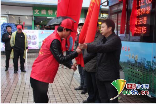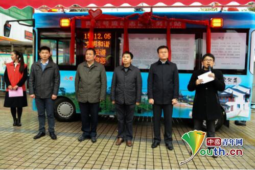 在徐坊客運站,青云譜區(qū)委副書記唐于祿介紹了志愿服務日的相關(guān)活動情況,青年志愿者代表宣讀了《關(guān)于在全省廣泛深入開展青年志愿服務活動》的倡儀書;團省委副書記廖良生為新成立的“青云號”志愿服務隊授旗。省、市、區(qū)領導共同為全省首個流動志愿服務綜合平臺——“青云號”流動志愿服務驛站揭牌,他們還親自登上流動志愿服務車,詳細了解驛站的功能及志愿服務的內(nèi)容。