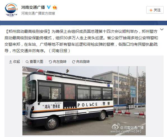 上合會議“情定”鄭州 全市啟動最高級別安保