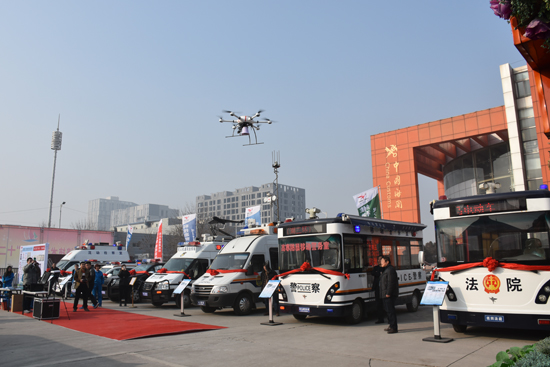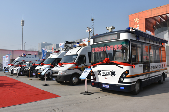 近日,鄭州經(jīng)濟(jì)技術(shù)開發(fā)區(qū)在河南保稅直購(gòu)體驗(yàn)中心舉辦“十二五”發(fā)展成果展。1月8日下午,省委常委、鄭州市委書記吳天君及相關(guān)領(lǐng)導(dǎo)等到場(chǎng)觀看了成果展。 森源鴻馬作為經(jīng)濟(jì)技術(shù)開發(fā)區(qū)的明星企業(yè),此次攜無(wú)人機(jī)通訊指揮車、移動(dòng)警務(wù)方艙、移動(dòng)警務(wù)室、移動(dòng)法庭、流動(dòng)檢察室、皮卡巡邏車、雙頭巡邏車、電動(dòng)巡邏車、SUV巡邏車等旗下10款產(chǎn)品閃耀亮相,受到了鄭州市參觀領(lǐng)導(dǎo)的好評(píng)。