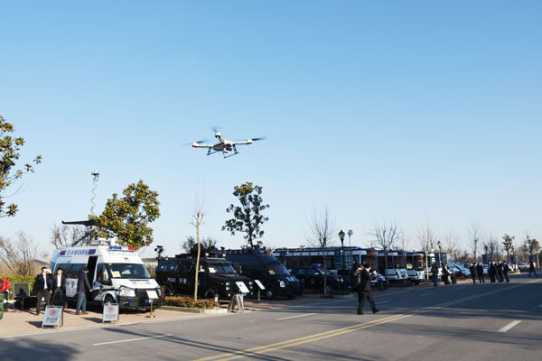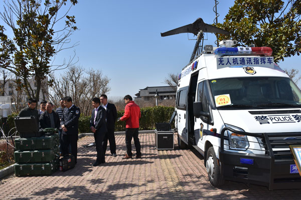 公安領(lǐng)導(dǎo)參觀無人機通訊指揮車