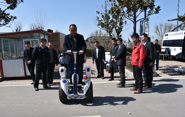 鄭州市公安局領(lǐng)導(dǎo)觀看警用平衡車演示