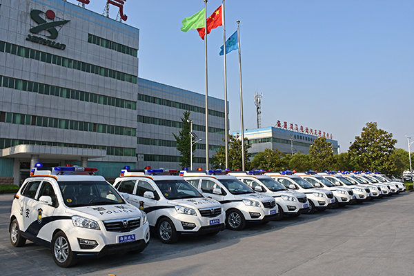 安徽阜陽(yáng)潁東分局14臺(tái)森源鴻馬SUV電動(dòng)巡邏車發(fā)車 搭建網(wǎng)格化巡邏平臺(tái)