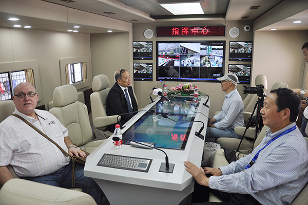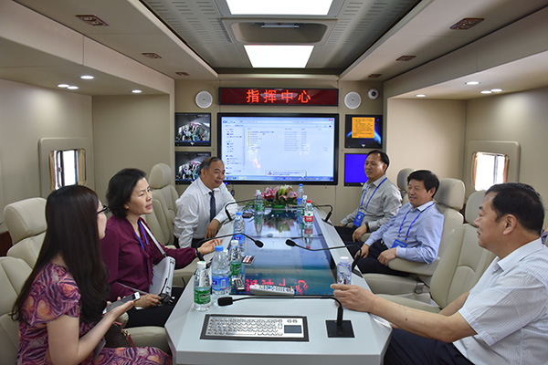 河南省公安廳副廳長吳忠華參觀9米全地形移動警務(wù)方艙