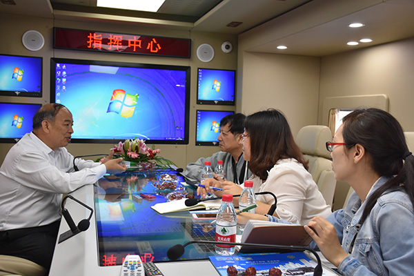 公司總經(jīng)理馬鴻軍為政府信息采購報記者介紹9米全地形移動警務(wù)方艙