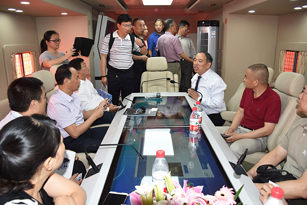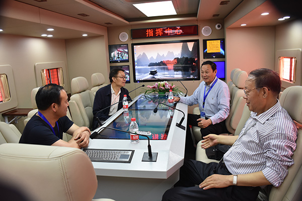 中國警察協(xié)會警務保障分會理事長劉明望參觀9米全地形移動警務方艙