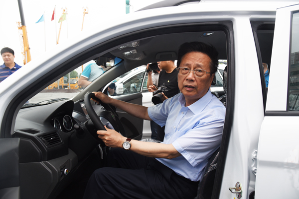 全國(guó)人大常委會(huì)副委員長(zhǎng)陳昌智試乘SUV電動(dòng)巡邏車(chē)