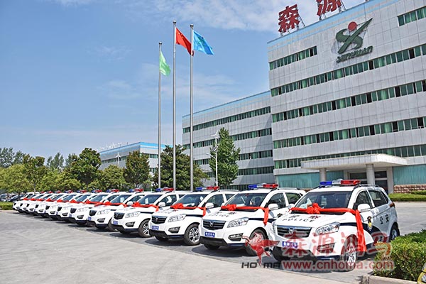7月21日下午,在森源鴻馬公司舉行河南信陽30臺SUV 電動巡邏車發(fā)車儀式。