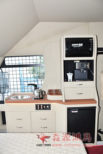 在生活設(shè)施方面,移動警務(wù)方艙配備吧臺、咖啡機、微波爐、飲水機、冰箱、洗手池等設(shè)施,可以給警務(wù)工作人員提供人性化的臨時休息場所。