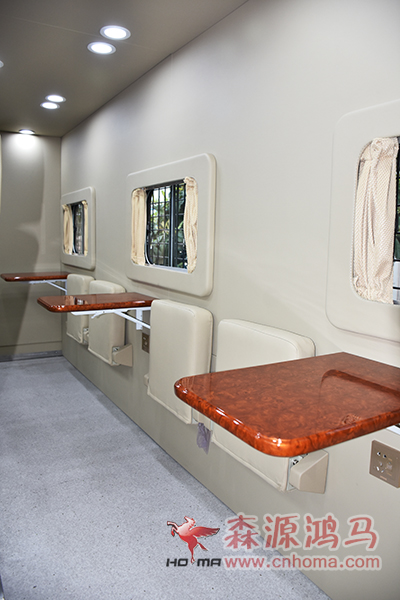 據(jù)介紹,9米全地形移動警務(wù)方艙是森源鴻馬結(jié)合貴州都勻公安使用要求定制開發(fā)的一款運兵、防暴、指揮、通信綜合型車輛,具備一車多用功能,適用于公安實戰(zhàn)單位執(zhí)行處突、維穩(wěn)等任務(wù)重的警力輸送、辦公、通信指揮、基本生活保障等,可滿足民警24小時野外執(zhí)行查緝?nèi)蝿?wù)和基本生活的需求,在全國屬于首創(chuàng)。
