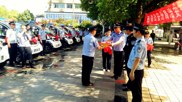江西南昌市西湖公安分局舉行23臺治安巡邏車發(fā)放儀式
