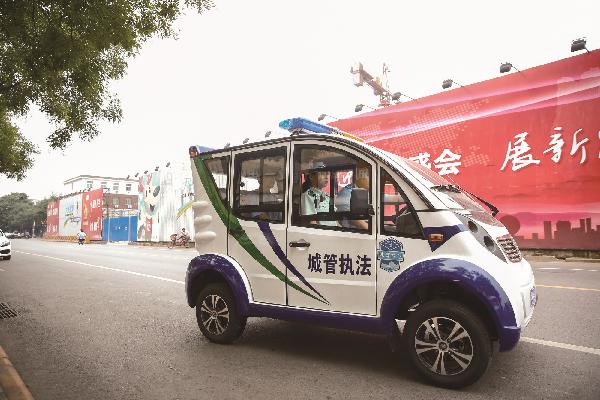 日前,記者在我區(qū)多條道路上均見(jiàn)到藍(lán)白相間的電動(dòng)執(zhí)法車在街上巡邏,據(jù)了解,這是我區(qū)城管執(zhí)法局投入的新“裝備”。