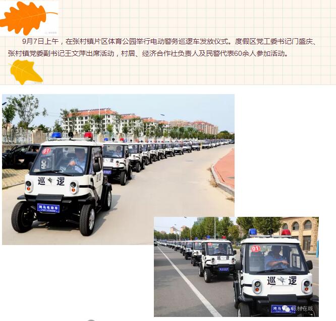 電動警務巡邏車的投入使用,將極大提升社區(qū)安保巡防能力。今后的工作中,張村鎮(zhèn)要將電動警務巡邏車打造成讓違法犯罪分子膽寒的“戰(zhàn)車”,全面提升發(fā)現(xiàn)、打擊現(xiàn)行違法犯罪的能力;要將電動警務巡邏車打造成服務群眾的“愛民車”,全面提升轄區(qū)群眾的安全感和滿意度;要將電動警務巡邏車打造成展示平安張村的 “形象車”,自覺接受群眾和媒體監(jiān)督,樹立良好形象。
