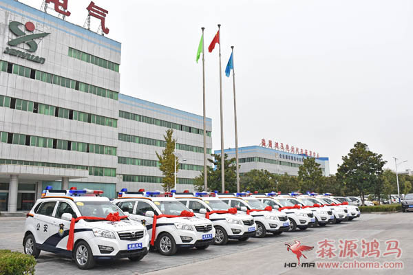 10月28日,在森源鴻馬公司舉行河南南陽10臺(tái)SUV電動(dòng)巡邏車發(fā)車儀式。