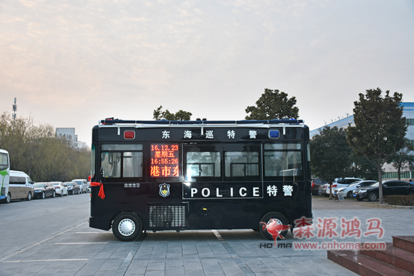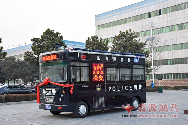 12月24日,在森源鴻馬公司舉行江蘇連云港移動警務(wù)室發(fā)車儀式。