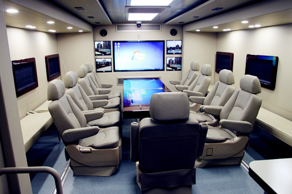 10米移動方艙指揮車整車具備完善的通訊組網(wǎng)系統(tǒng)、北斗定位系統(tǒng)、視頻會議系統(tǒng)、音視頻取證系統(tǒng)、移動辦公系統(tǒng),可實現(xiàn)野外開展視頻會議、決策指揮,能夠快速對突發(fā)事件進行全方位一體化組織、策劃、協(xié)調(diào)及控制。